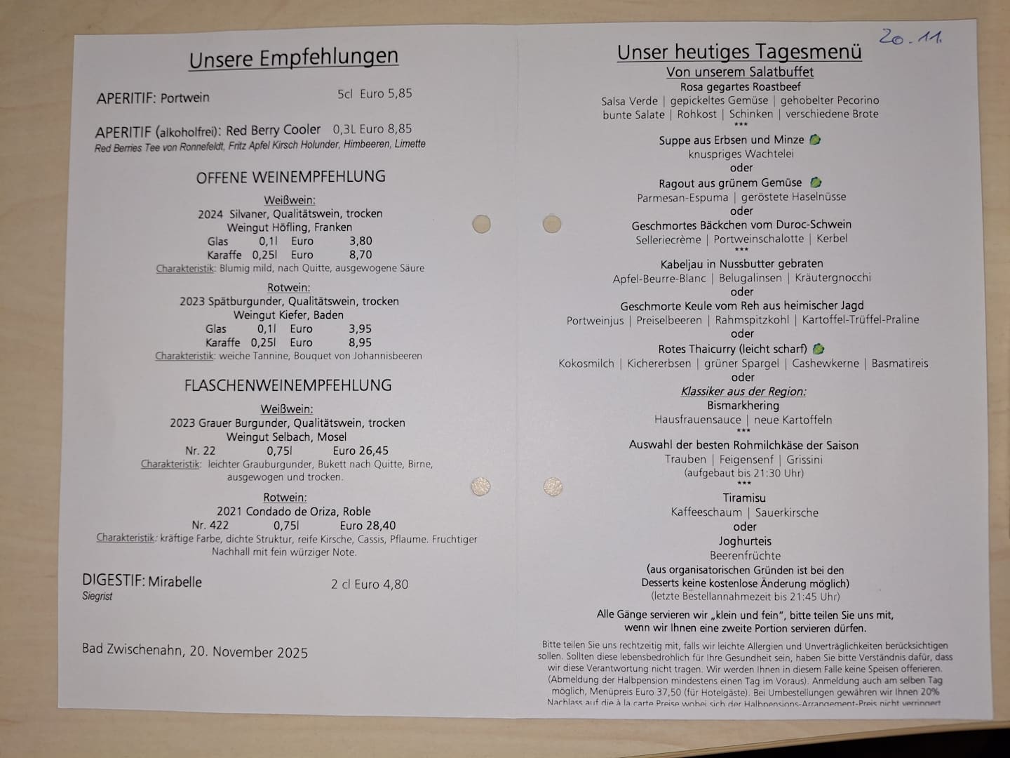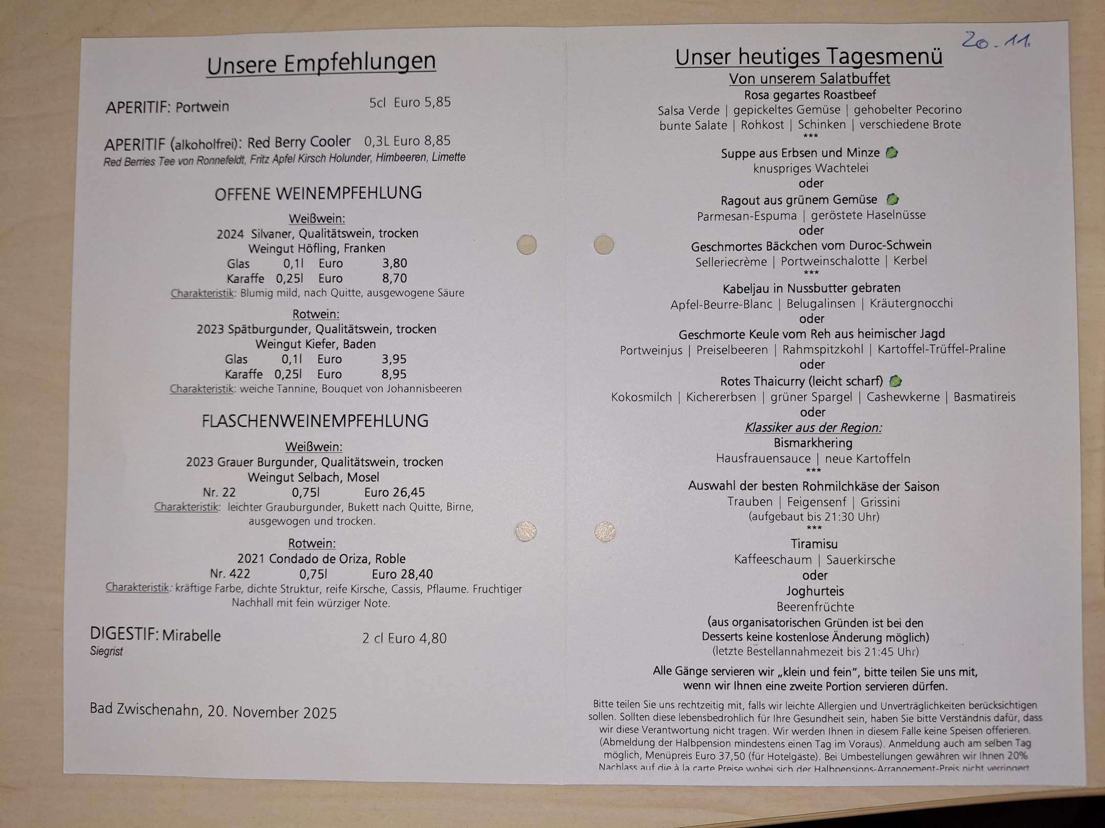 Speisekarte 20.11.25