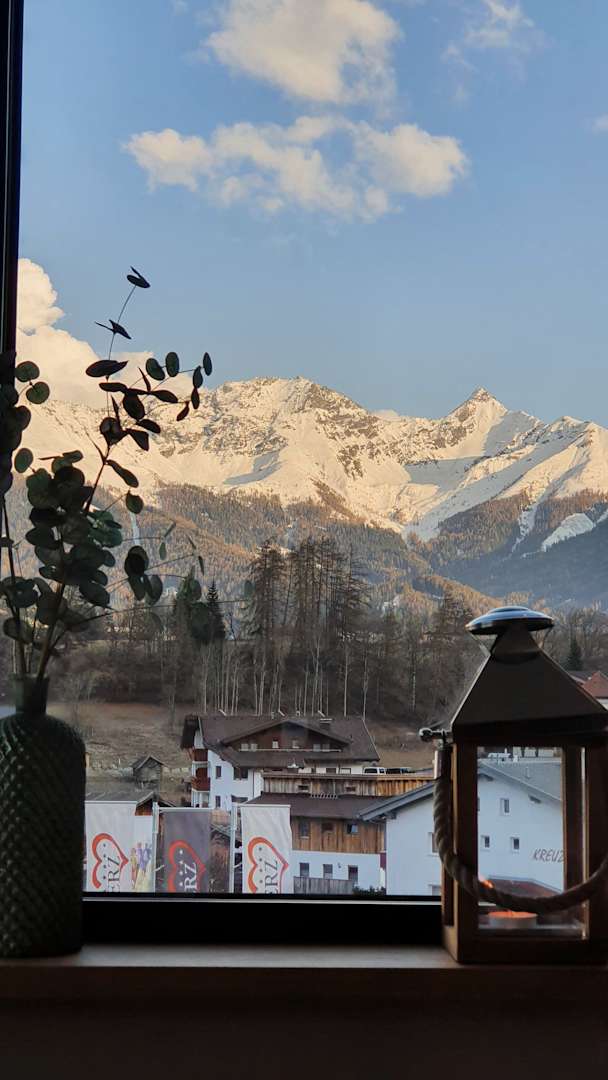 Blick aus dem Ruheraum des Sauna Cubes