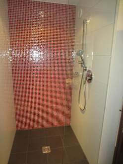 Trotz der Badewanne noch große Dusche im Bad
