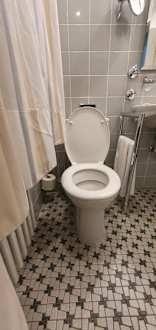 Toilette war direkt neben dem Vorhang. Man konnte nicht gerade sitzen.
