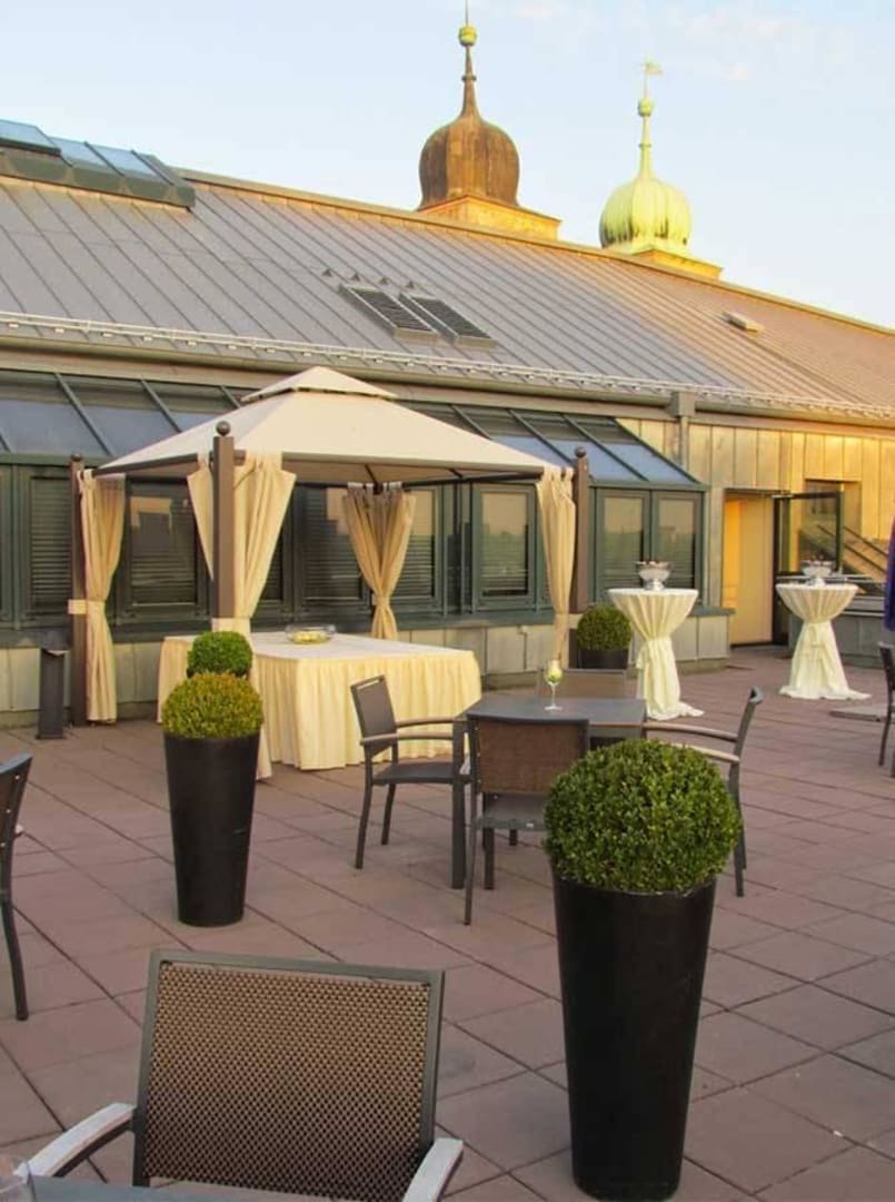 Blick von der Dachterasse auf die Kirche