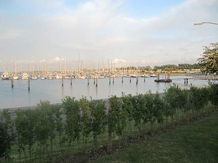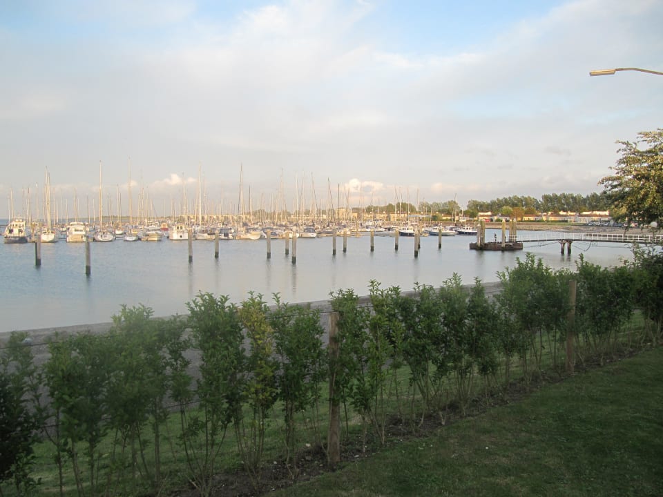 Blick aus dem Garten auf den Hafen