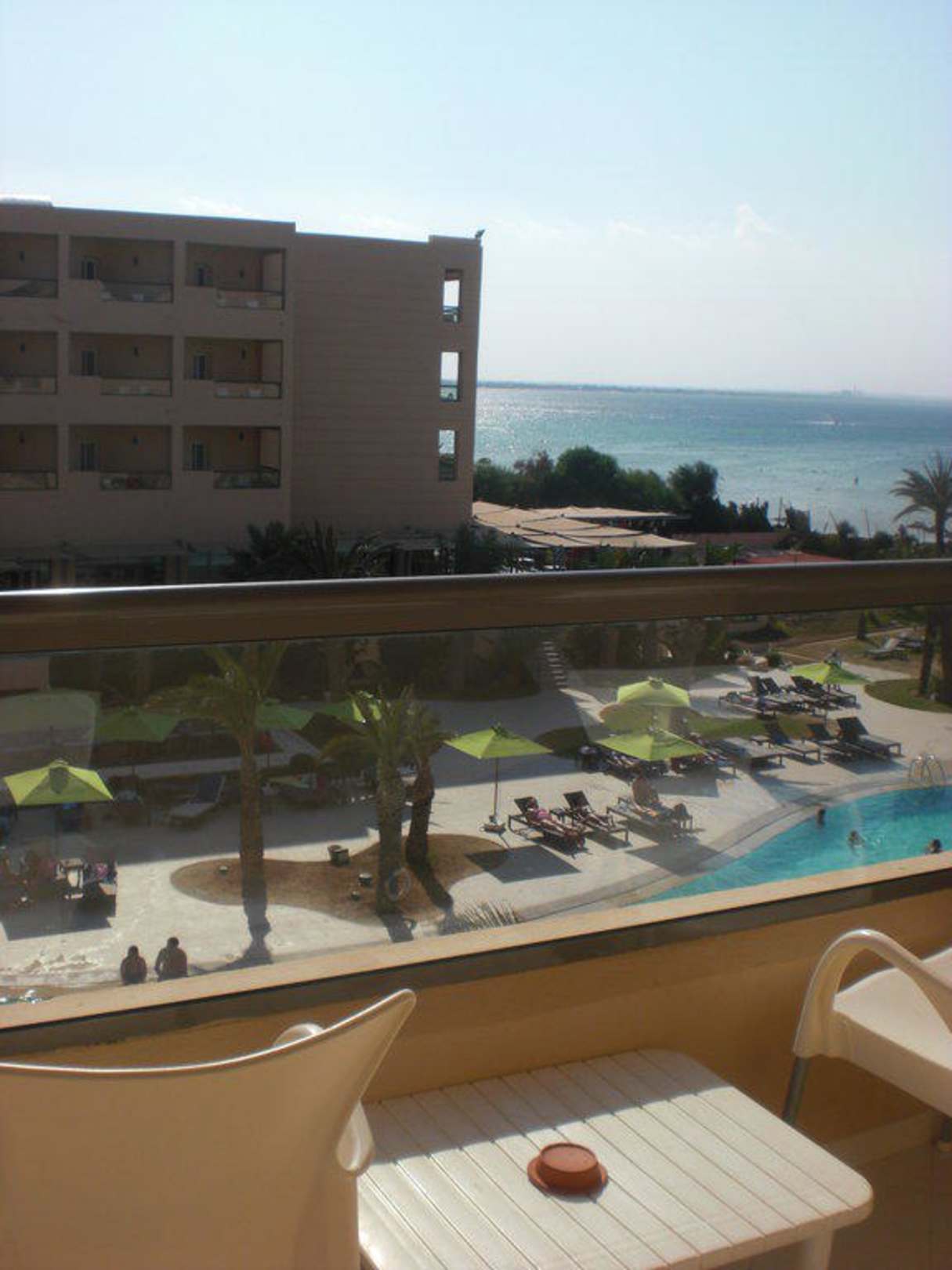 Ausblick vom Balkon auf das Hotel