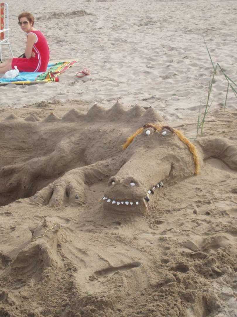 Sandkrokodil von vorne Rosapineta Camping Village