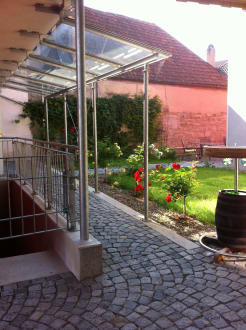 Zwischen den Gebäuden kleiner Garten und Terrasse