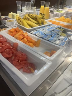 Frühstücksbuffet - jeden Morgen frisches lokales Obst und frischgepresste Säfte