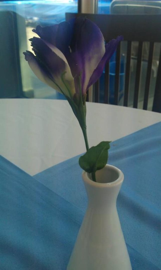 Sztuczne kwiatki w restauracji, w sam raz jak na hotel pięciogwiazdkowy (według B.P. Itaka). Naprawdę już lepiej niczego nie wstawiać w te wazony niż pchać wszędzie tę tandetę.
