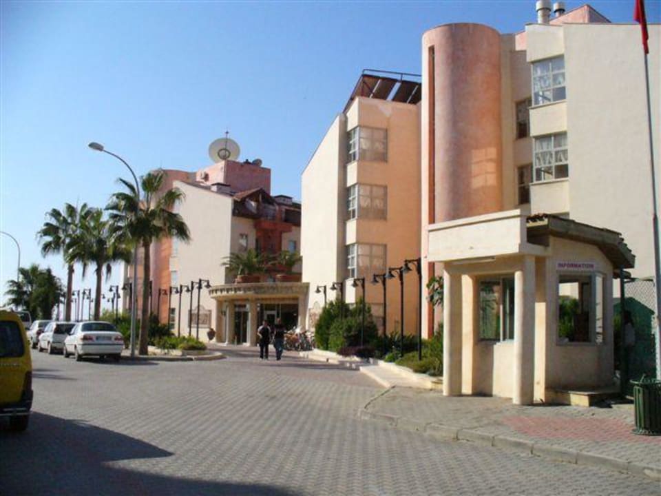 Seitlicher Blick auf den Hoteleingang.