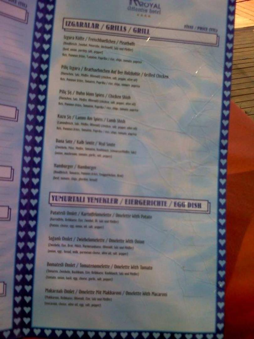 Karte vom Restaurant am Strand (Innenteil)