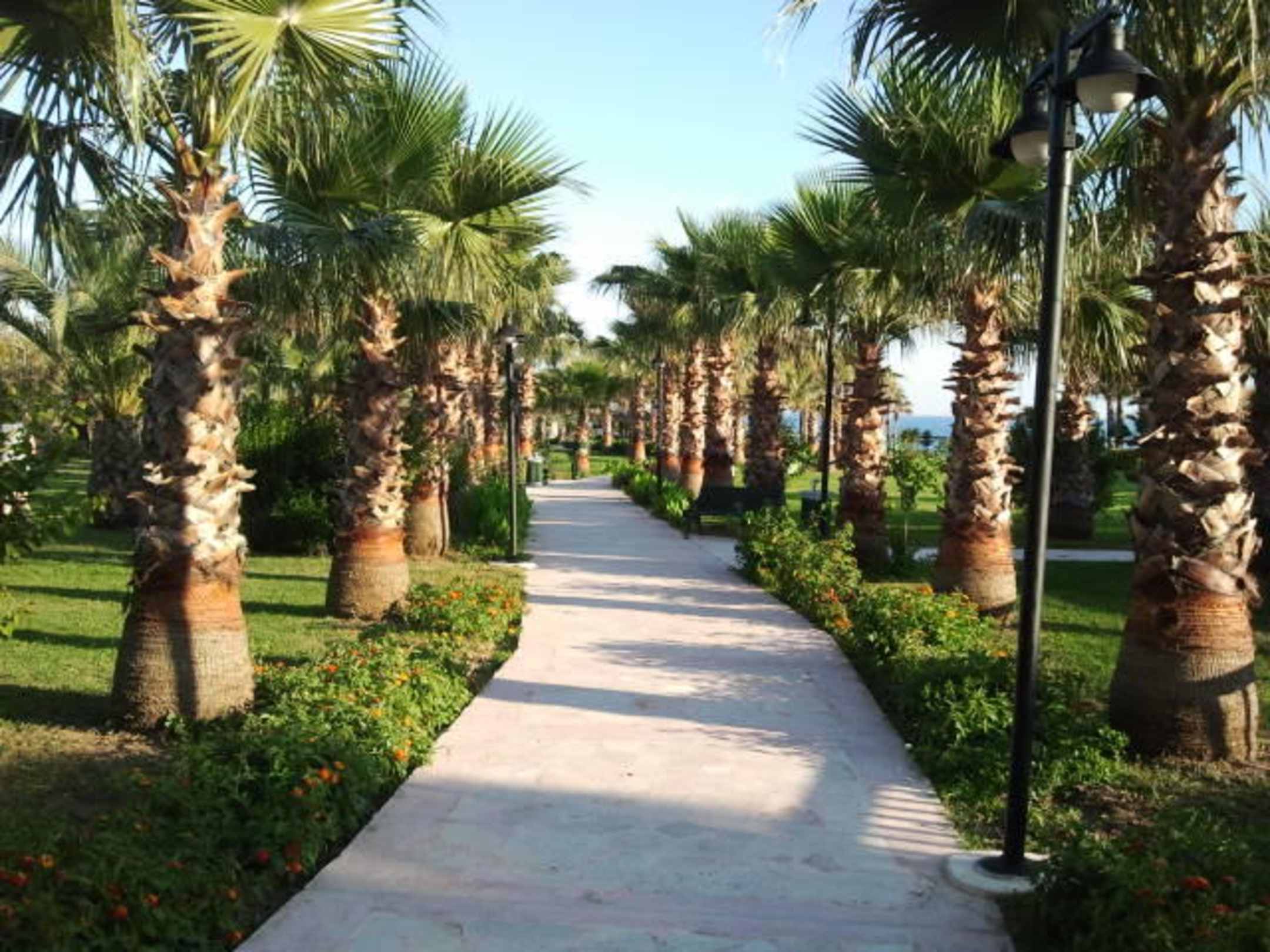 Der Weg zum Strand unter Palmen