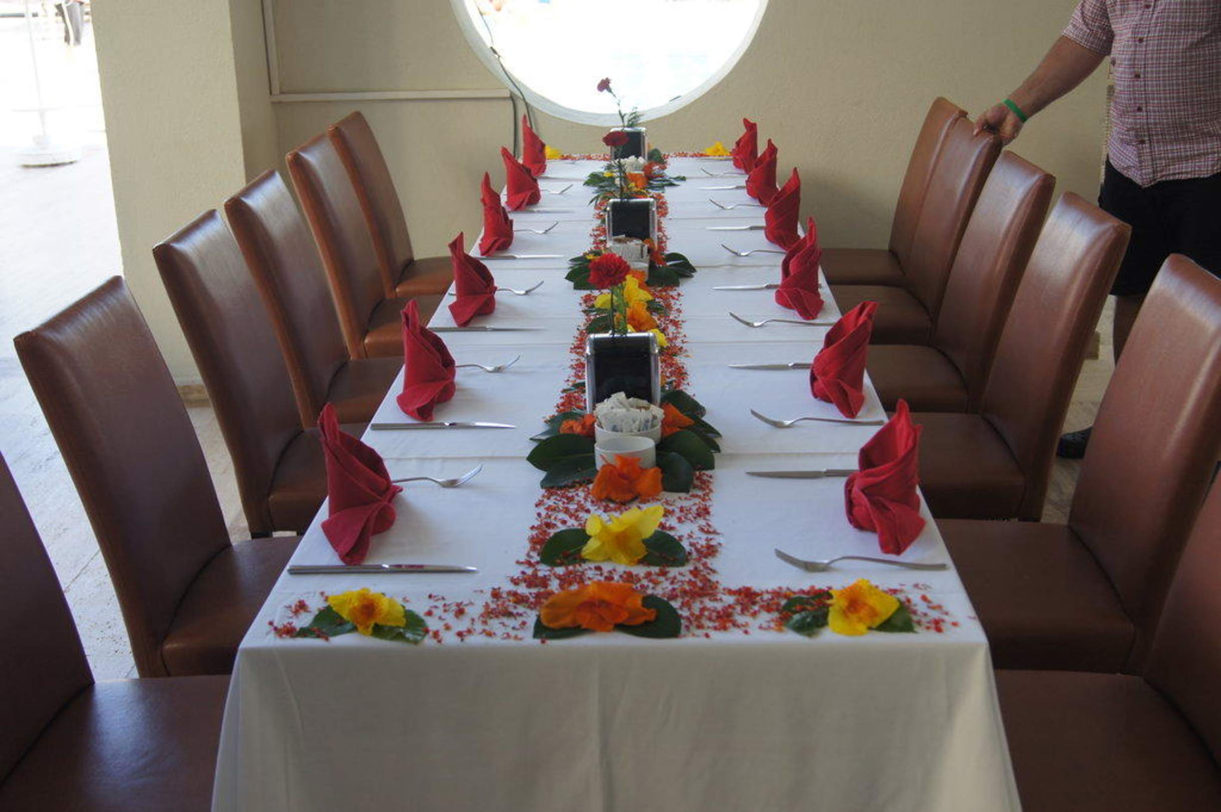 Geschmückter GeburtstagstischAnlässlich des Geburtstages einer Mitreisenden haben die Kellner den Mittagstisch liebevoll geschmückt