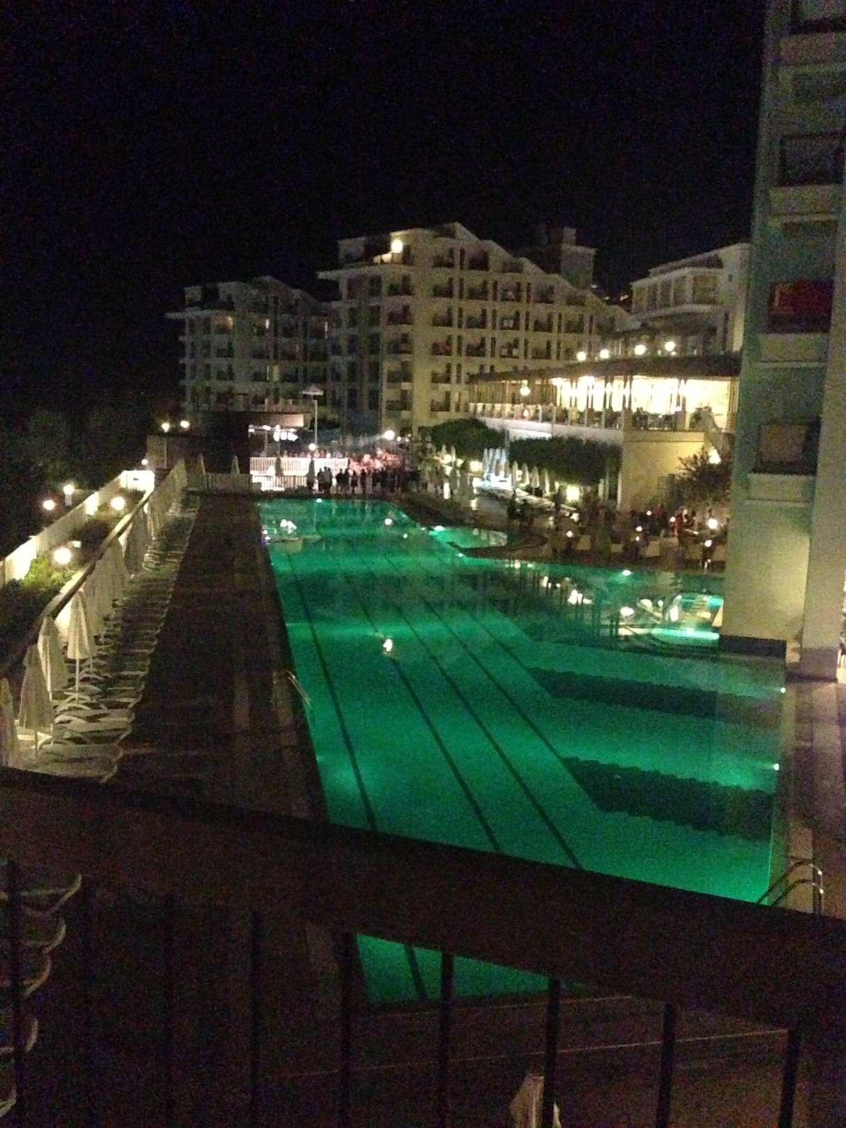 Nächtlicher Ausblick auf den Pool