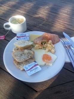 Leider nicht viel Obstauswahl morgens. Die Spiegeleier waren zu hart.