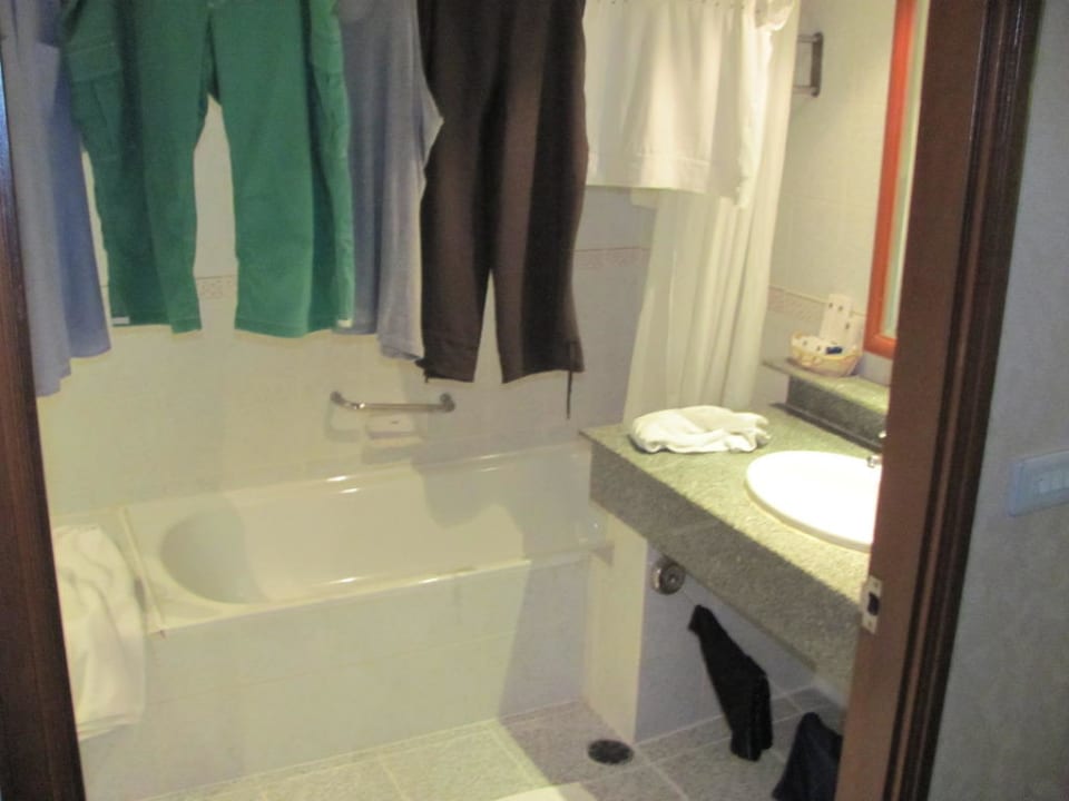 Waschbecken und BadewanneGrosser Platz, auch für nasse Wäsche.