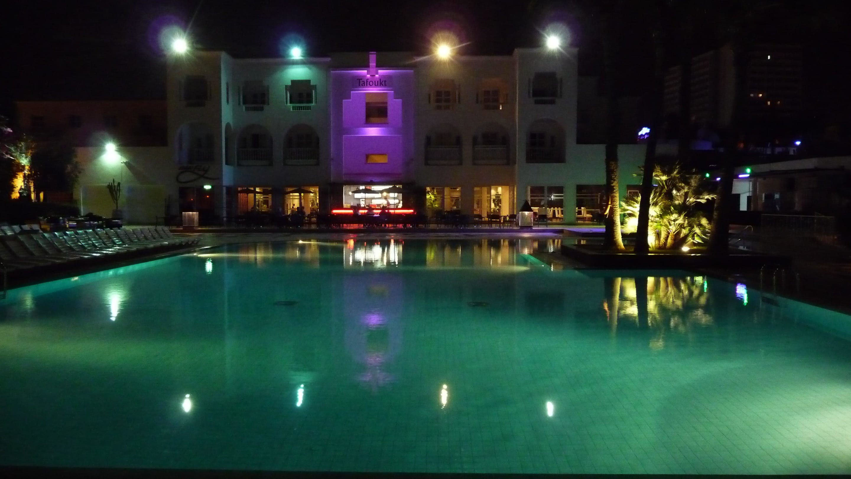 Blick aufs Hauptgebäude mit Poolbar