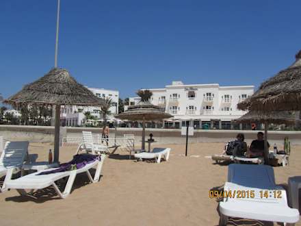 Blick vom Strand zum Hotel