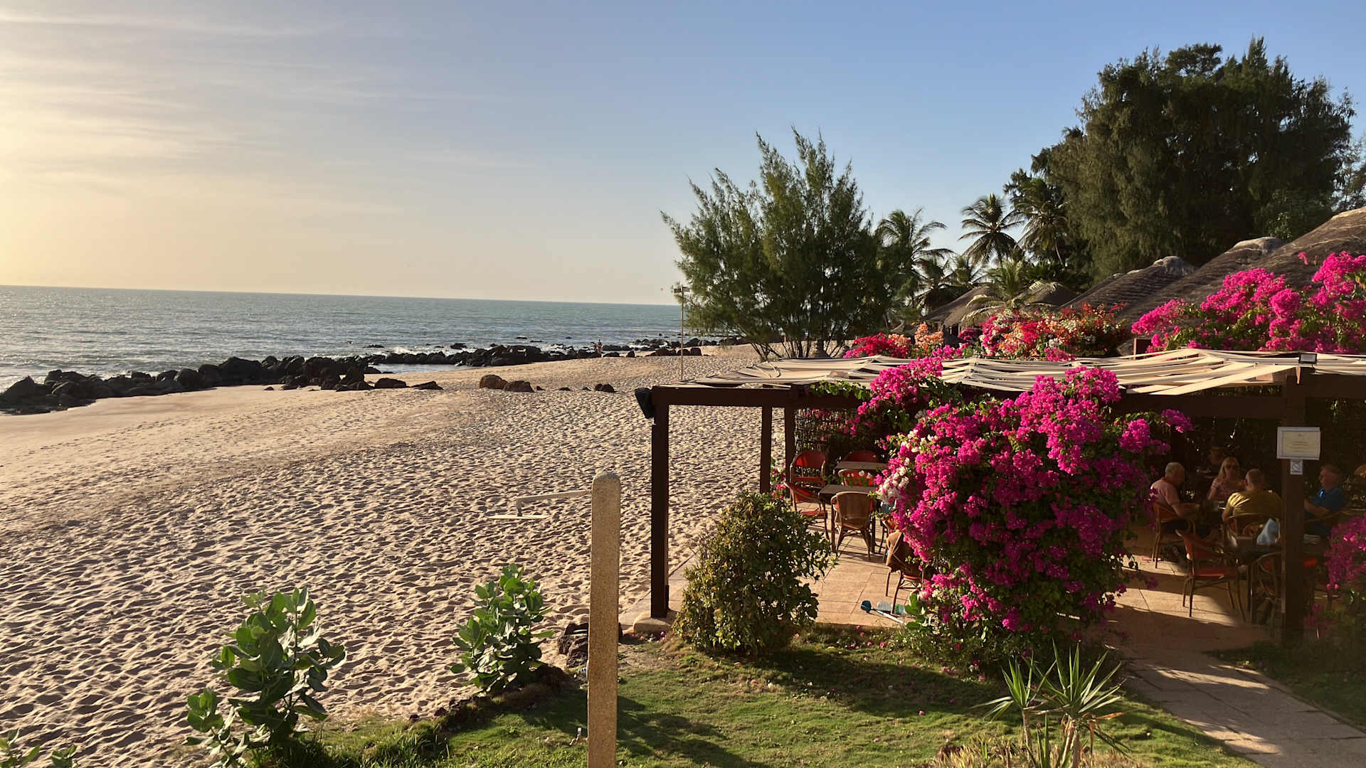 Strand und Restaurant.