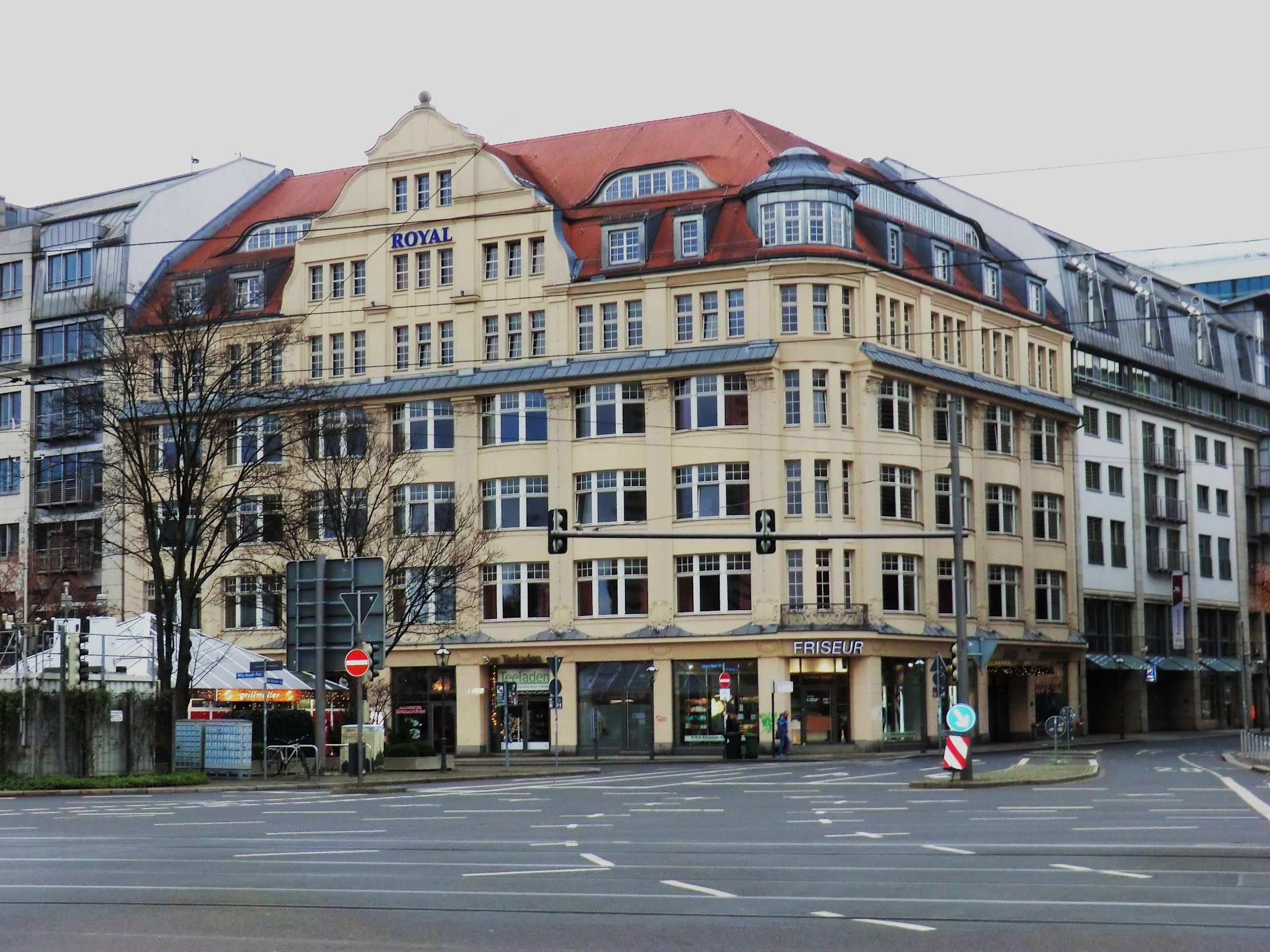AußenansichtRoyal International in Leipzig. Das Hotel verfügt auch über einen Privatparkplatz links neben dem Hotel.