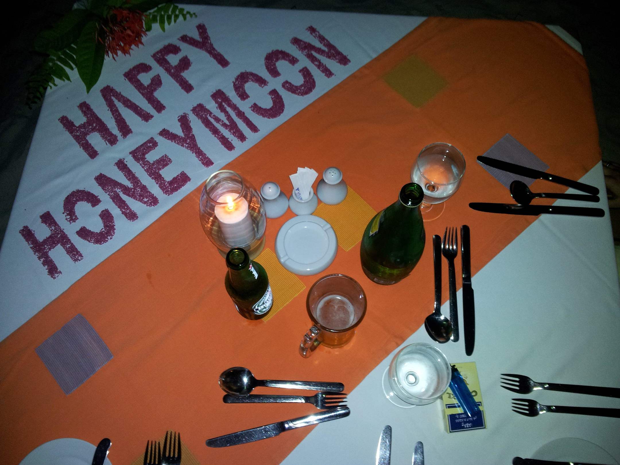 Tischdeko für HoneymoonerWir durften als Honeymooner einen Abend kostenlos im a la Carte Restaurant speisen. 4-Gänge Menue.