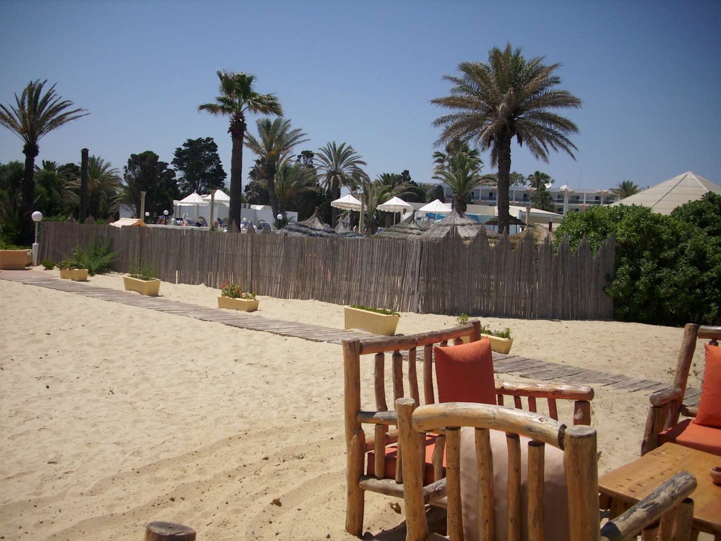 Weg zur Strandbar mit Sitzgruppe