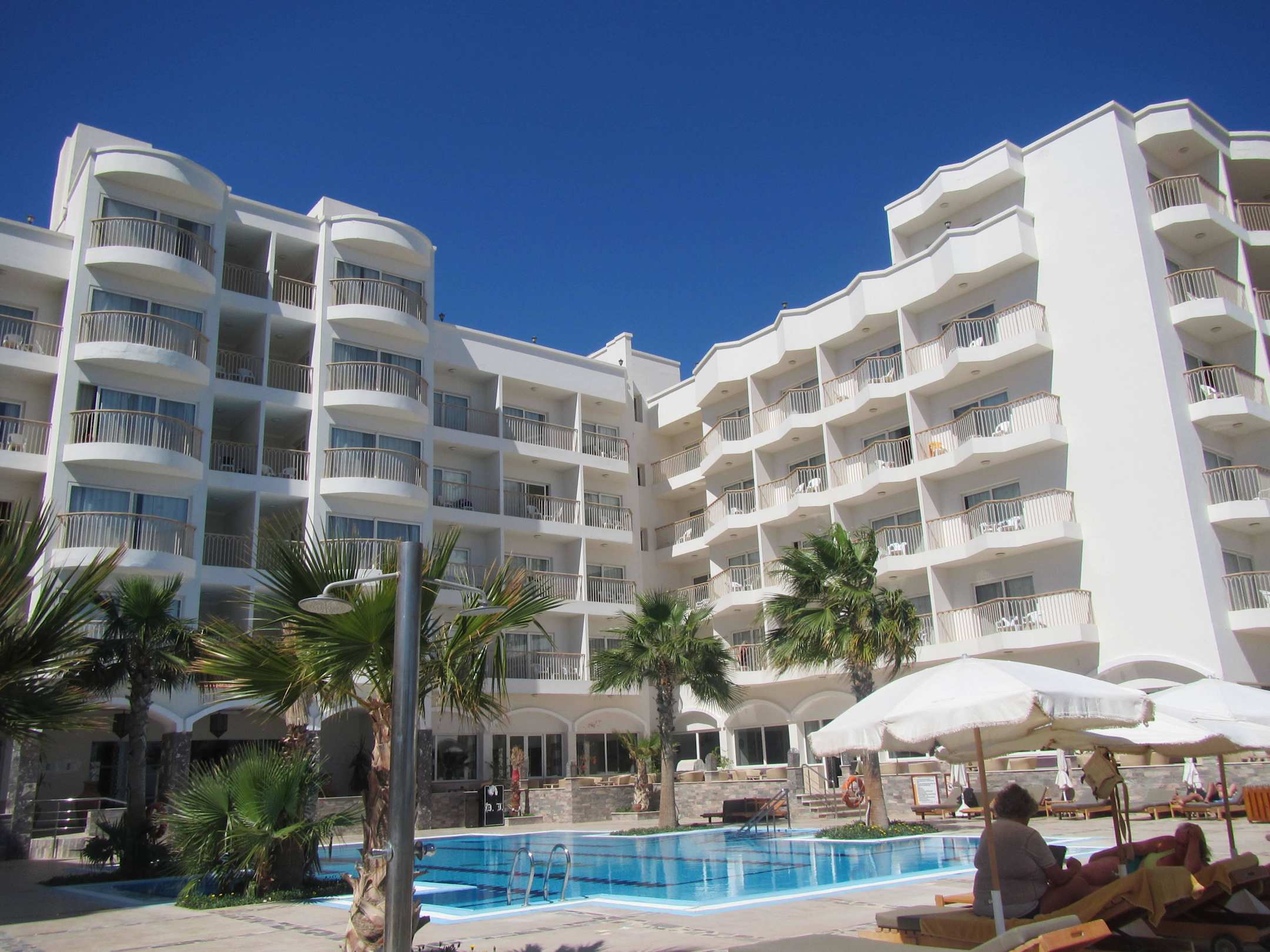 Blick auf das Hotel vom Pool