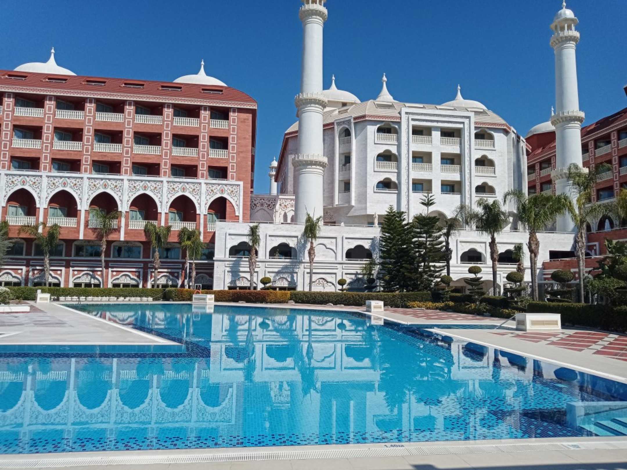 Blick auf den Pool (im Hintergrund das weiße Hauptgebäude)