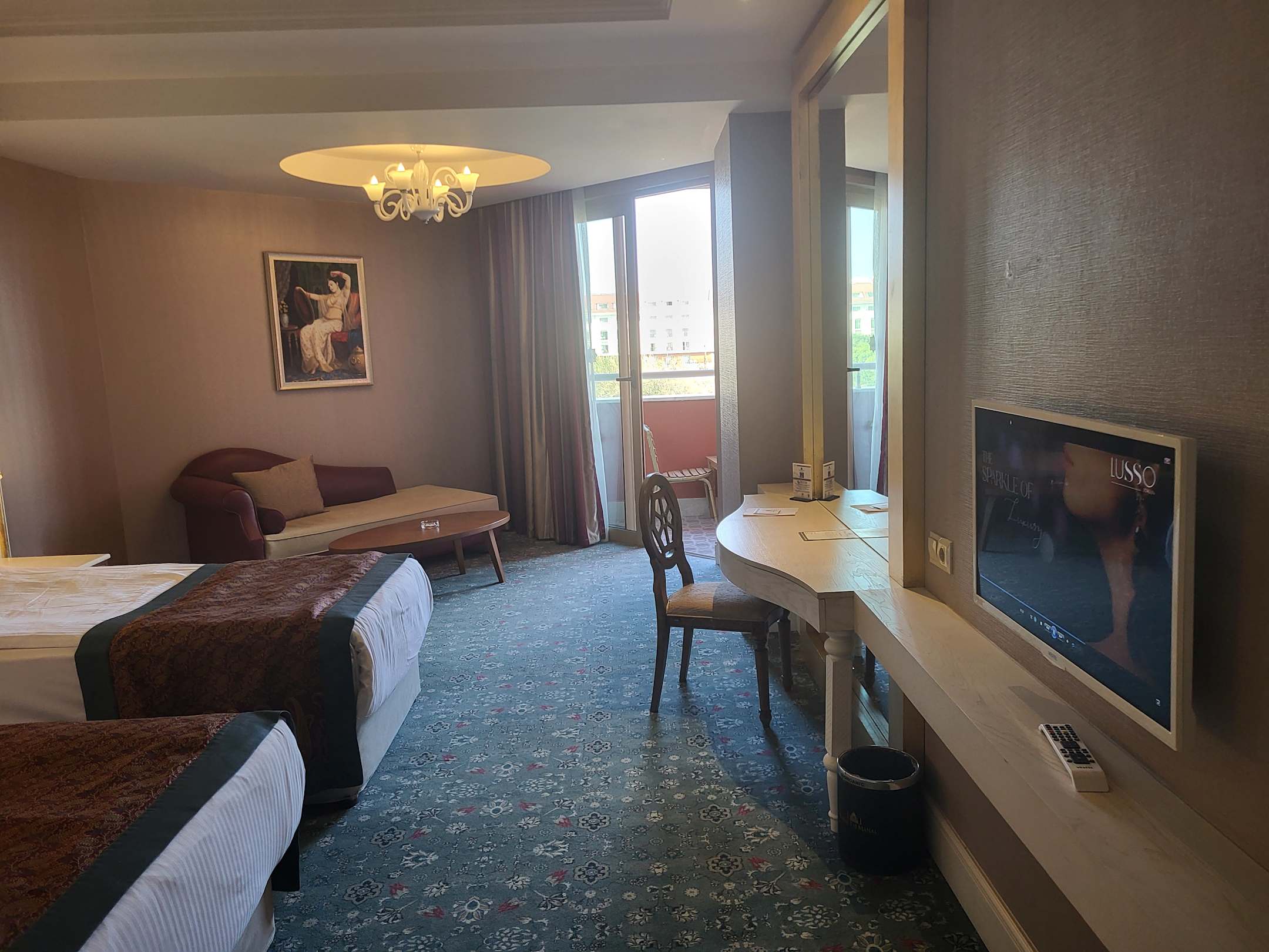 Großes Zimmer mit Balkon und seitlichen Meerblick zum Wohlfühlen.