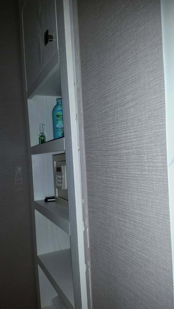 Nicht fachgerecht montierter Badezimmerschrank