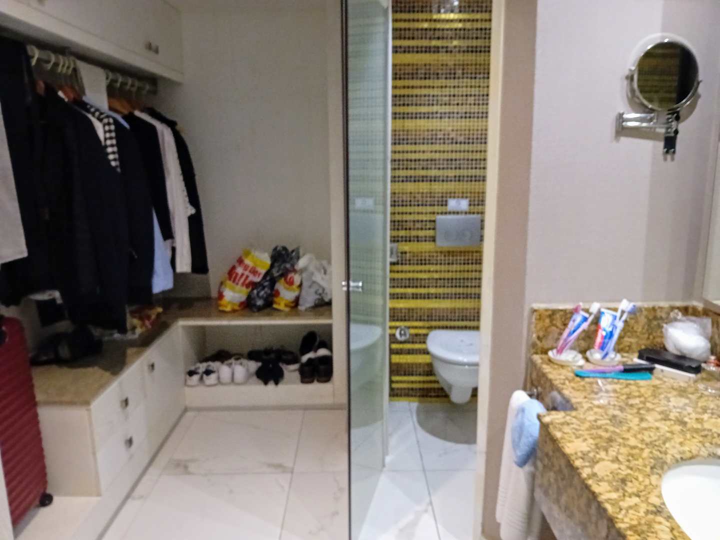 Zimmer 5416 das Bad mit Garderobe,Dusche Toilette .