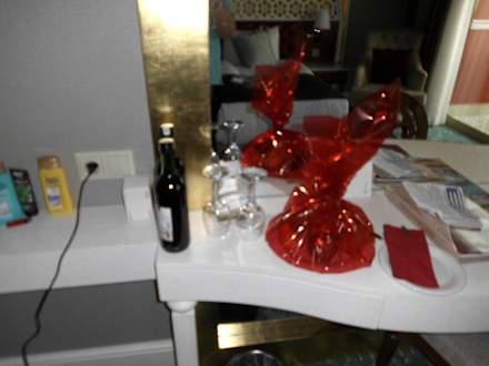 Zur Begrüßung 2 Flaschen Wein und 1 Obstteller