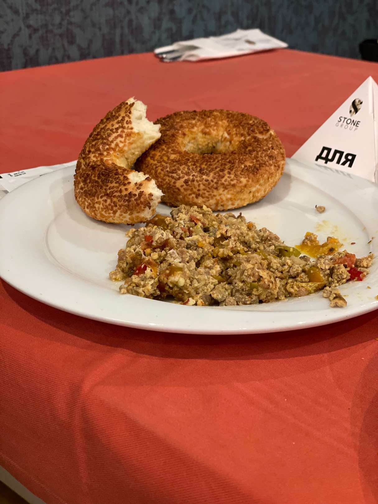 Simit und Hackfleisch mit Eiern und Gemüse