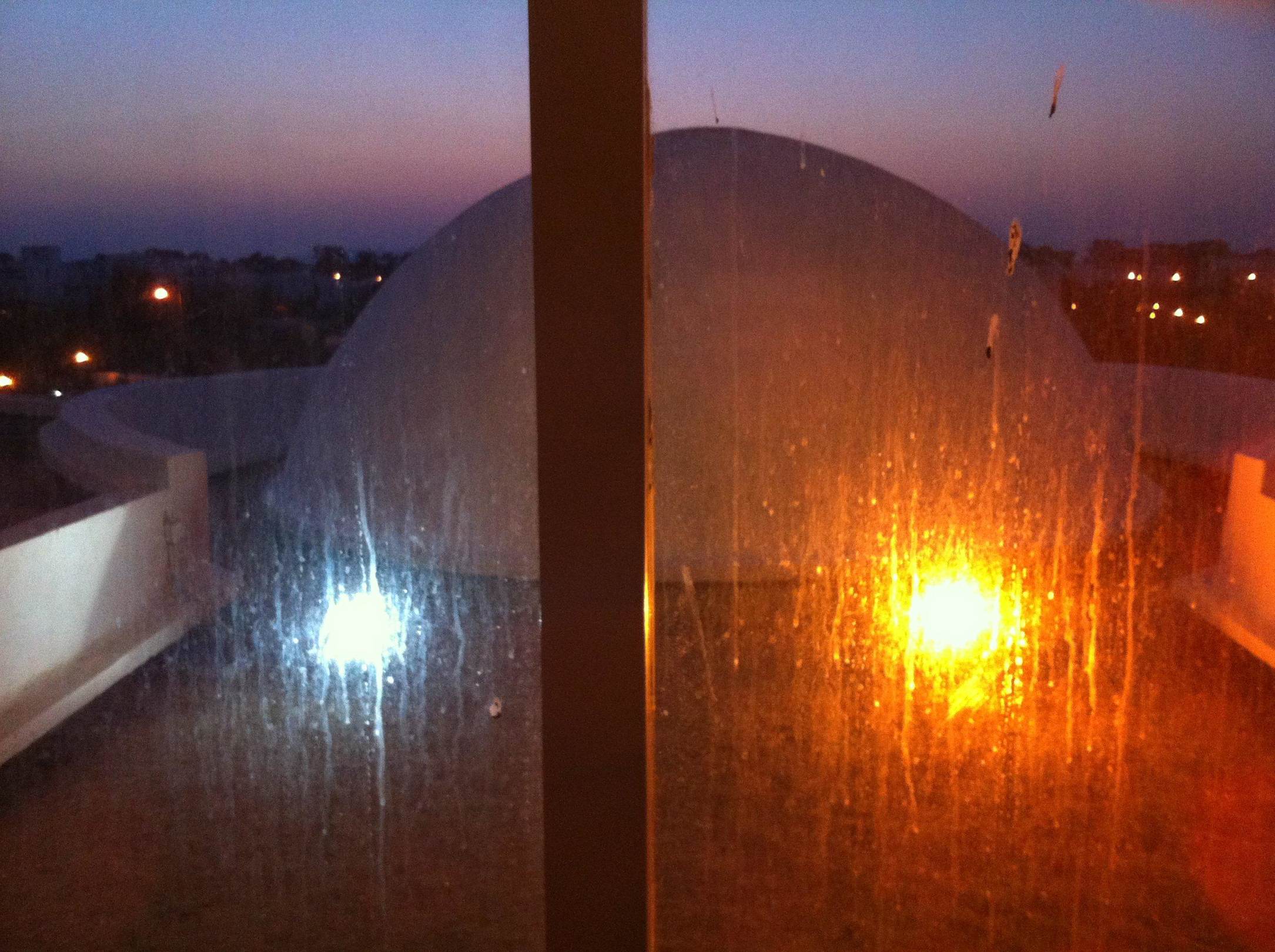 Blick durch das verschmutzte Fenster