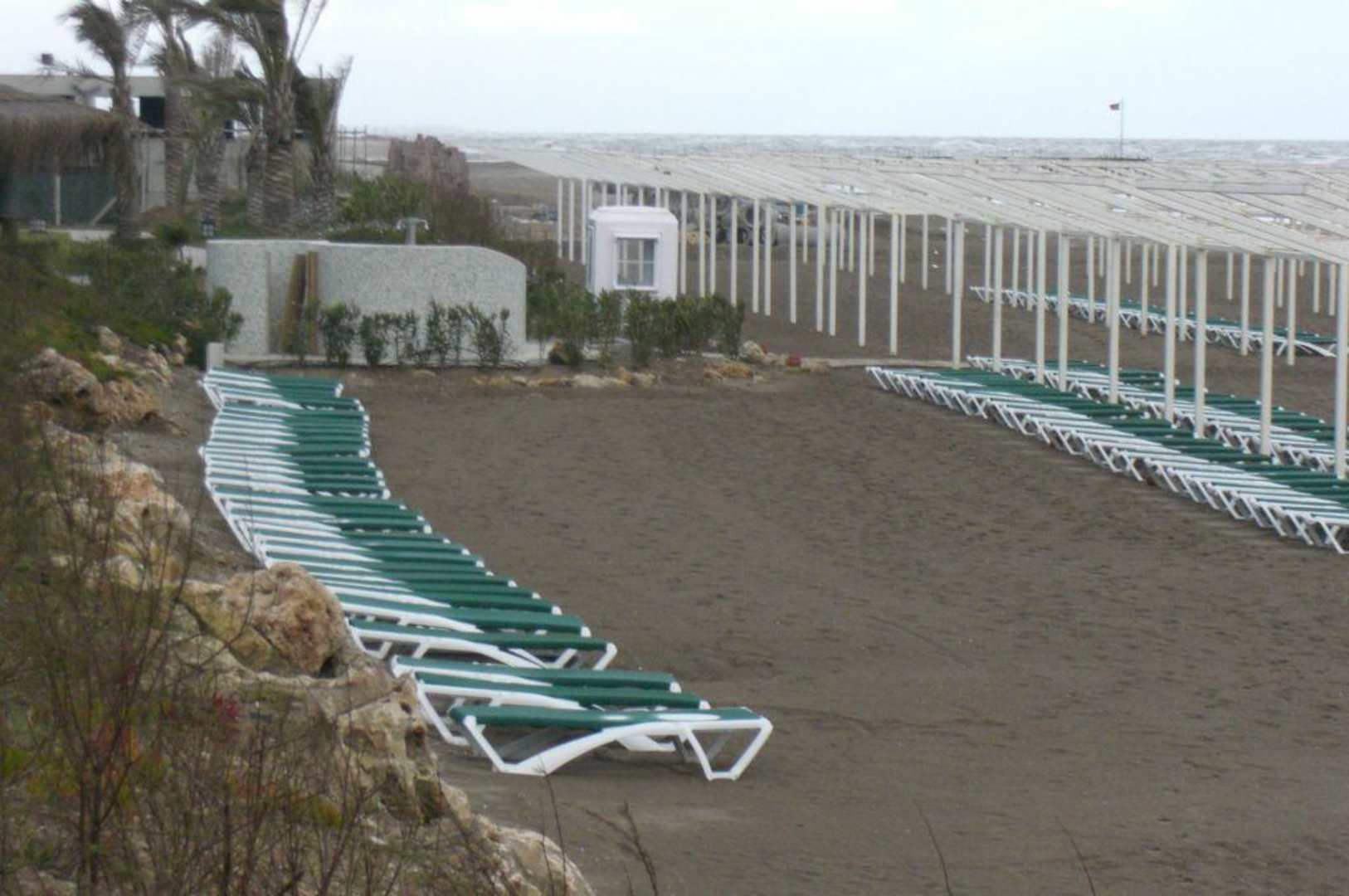 Direkt am Hotel bewachter Strand Aufnahme im März