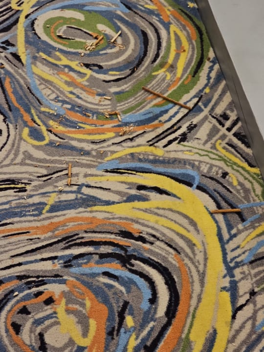 Man sieht den Dreck nicht, obwohl er offensichtlich ist...lag mehrere Tage auf der Etage