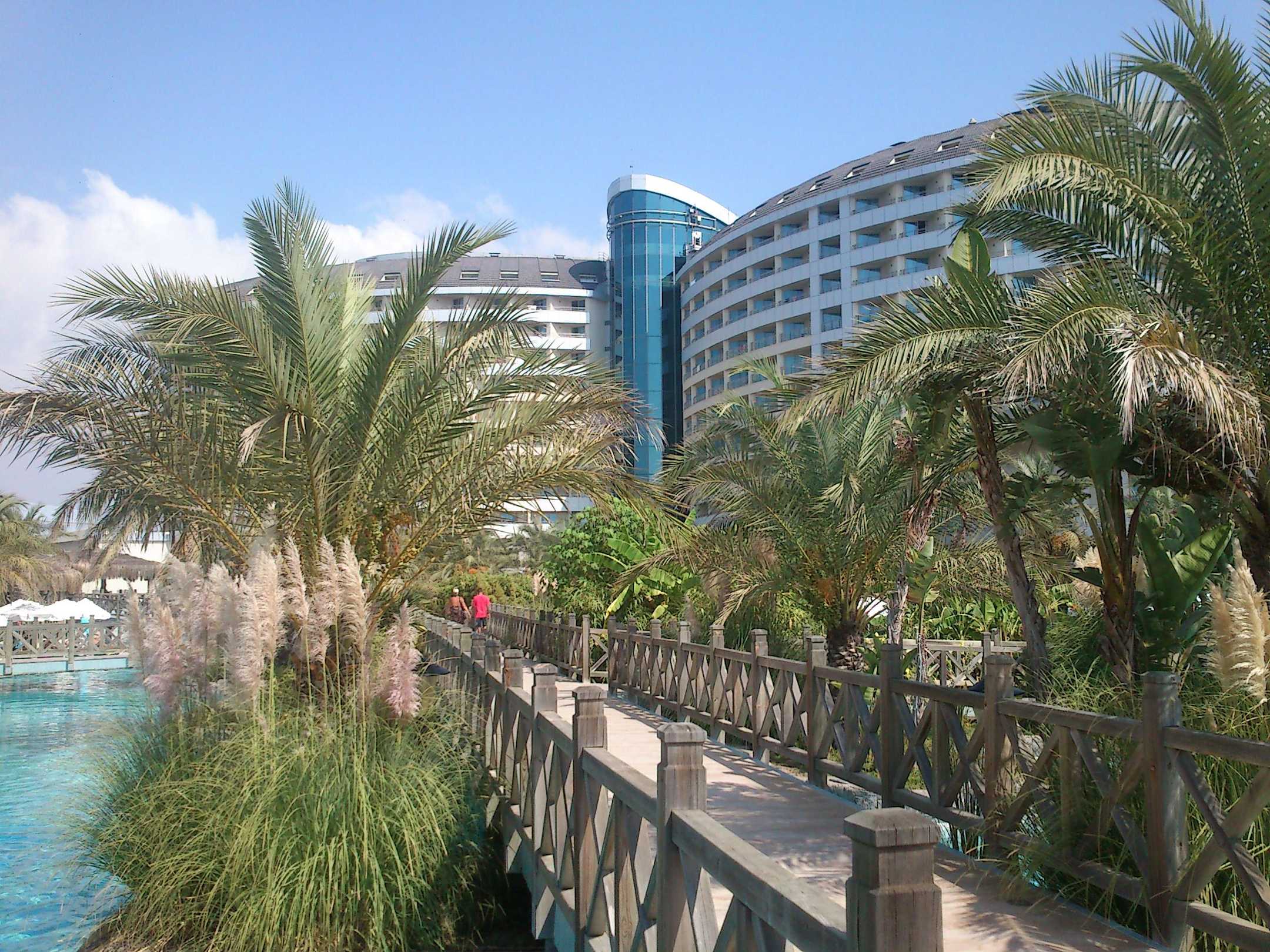 Steg über die Poolanlage