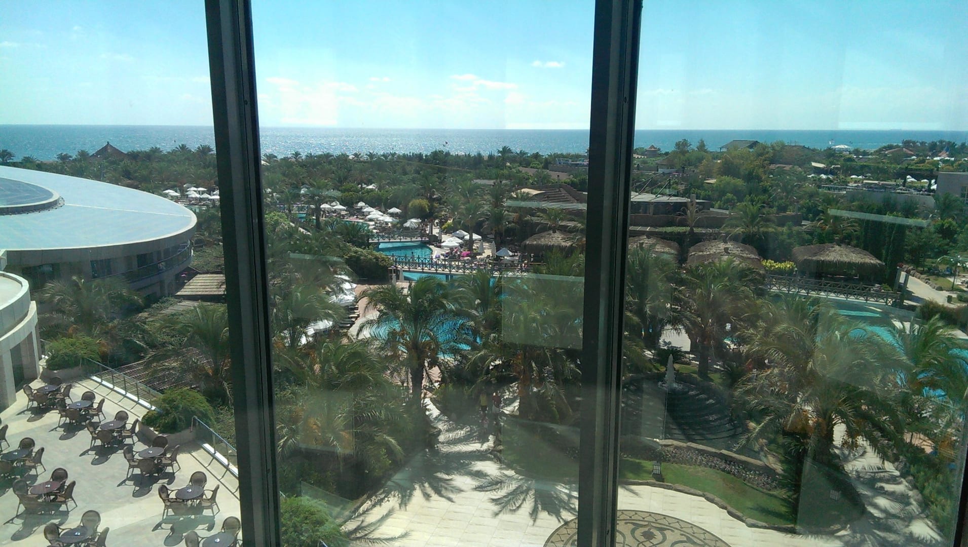 Ausblick auf Pool und Gartenanlage
