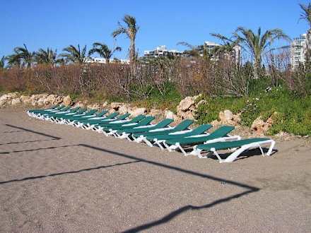Liegestühle am Strand, auch ohne Auflagen sehr bequem