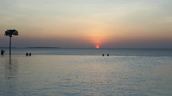 Perfekter Sonnenuntergang am Infinity Pool