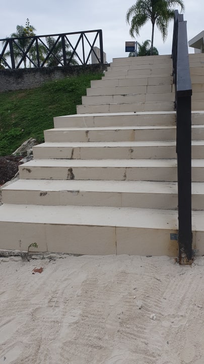 StrandSchuhe unbedingt empfehlenswert, unterschiedliche Stufenhöhe für Menschen mit Behinderung sehr gefährlich, für Gesunde auch"!