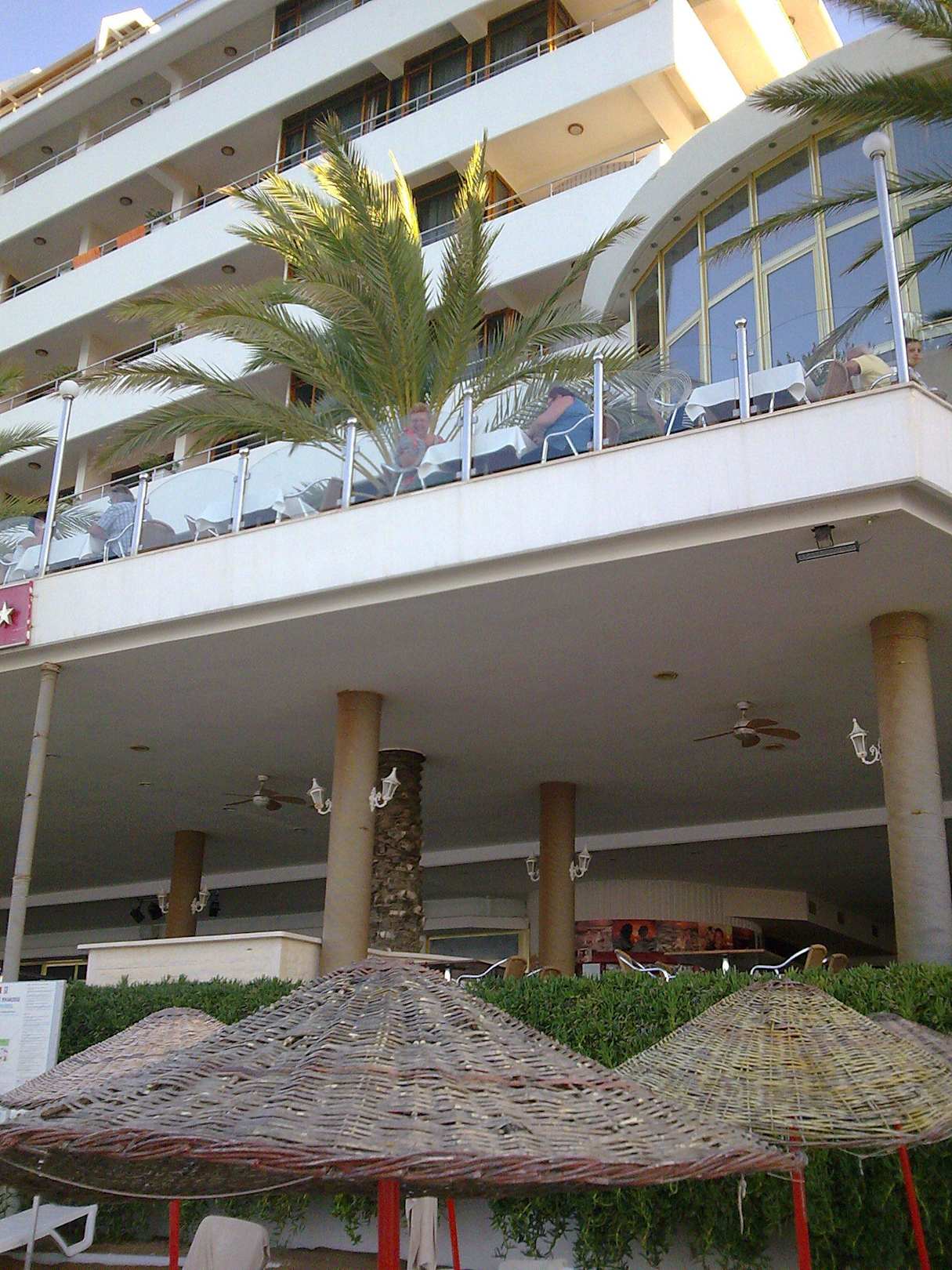 TerrassenIm Vordergrund die Sonnenschirme vom Strand.