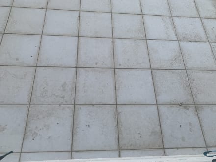 Blick vom Balkon auf das dreckige vollgeaschte Vordach