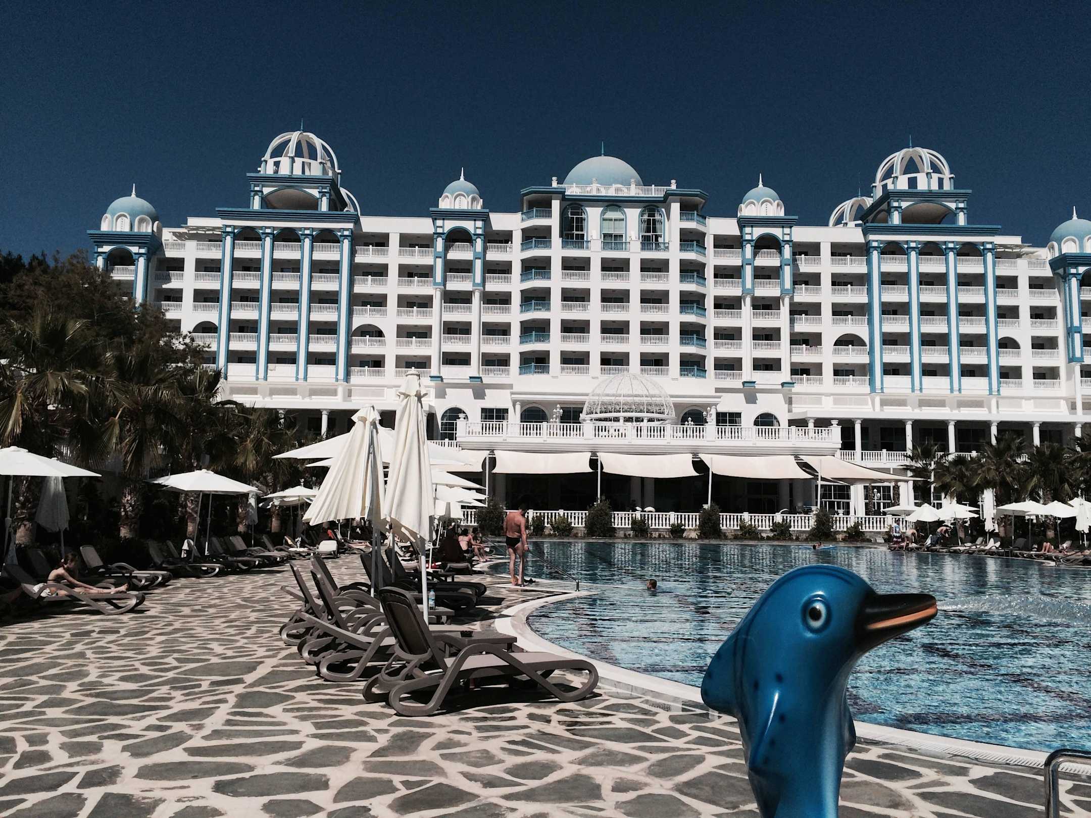 diese Sicht aufs Hauptgebäude vom Kinderpool aus
