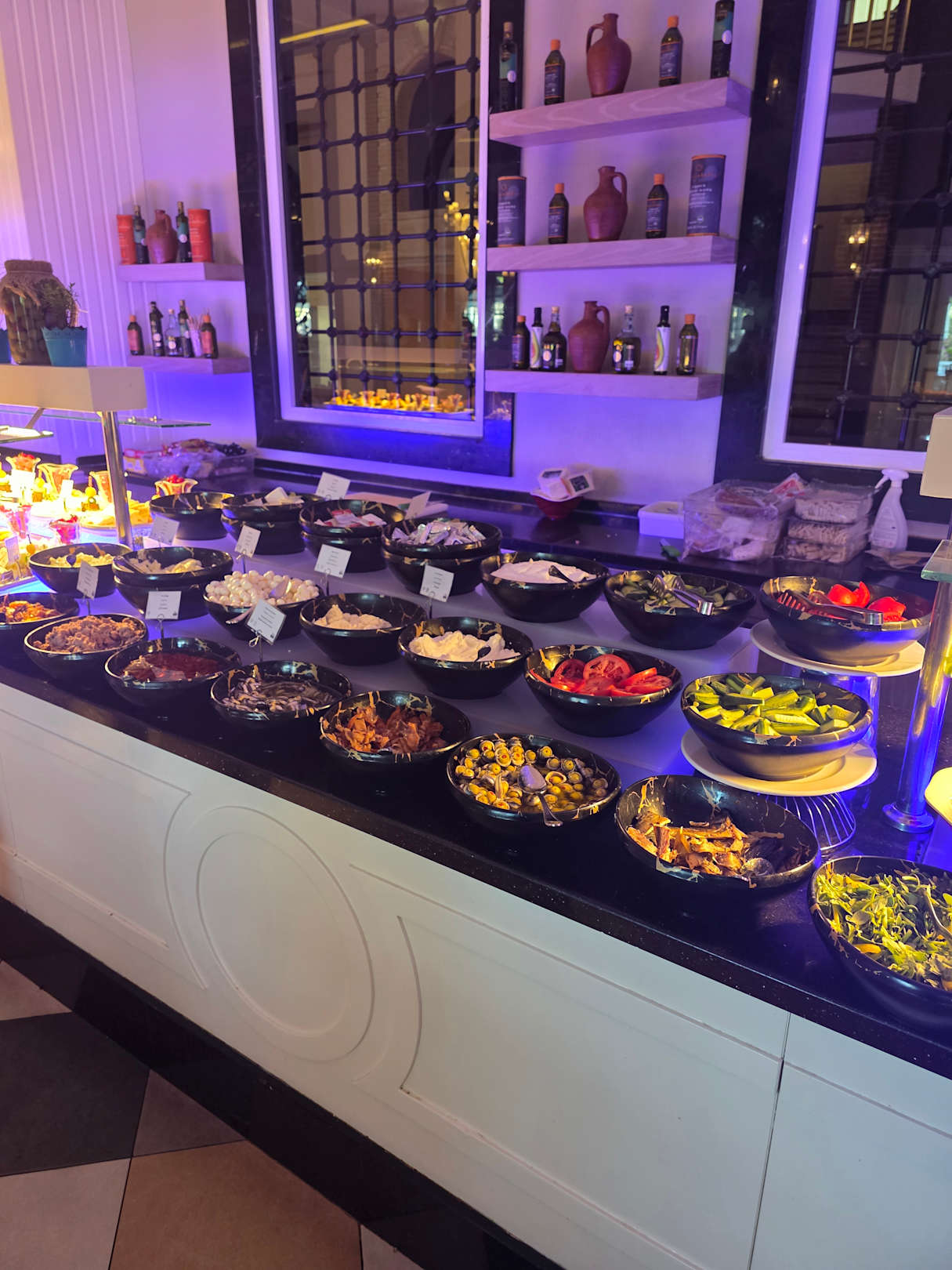 GastroFisch, Lachs, Sardellen, Oliven und Frischkäse-Aufstrich stehen ungekühlt auf Platten – sehr riskant bei warmen Temperaturen.