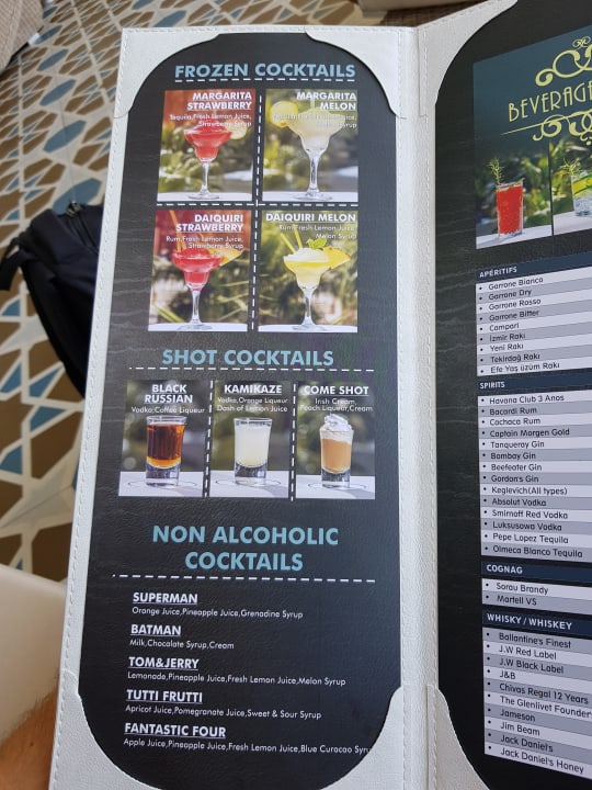 Cocktail Karte. Sehr lecker, am besten war der Strawberry Daiquiri und pina Colada.