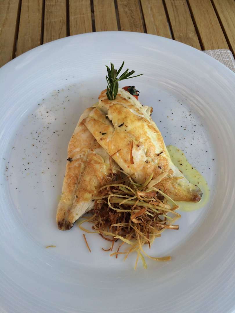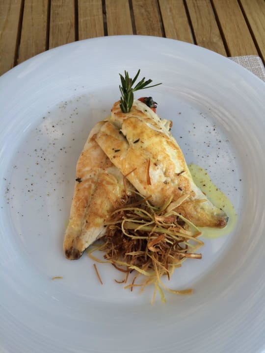 Gegrillter Fisch auf KartoffelpüreeWie jeden Mittag: im Flexilis Restaurant am Strand. Sehr lecker! Sehr zu empfehlen! Alles Speisen sind top!