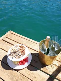 Sekt und Etagere im Pavillon
