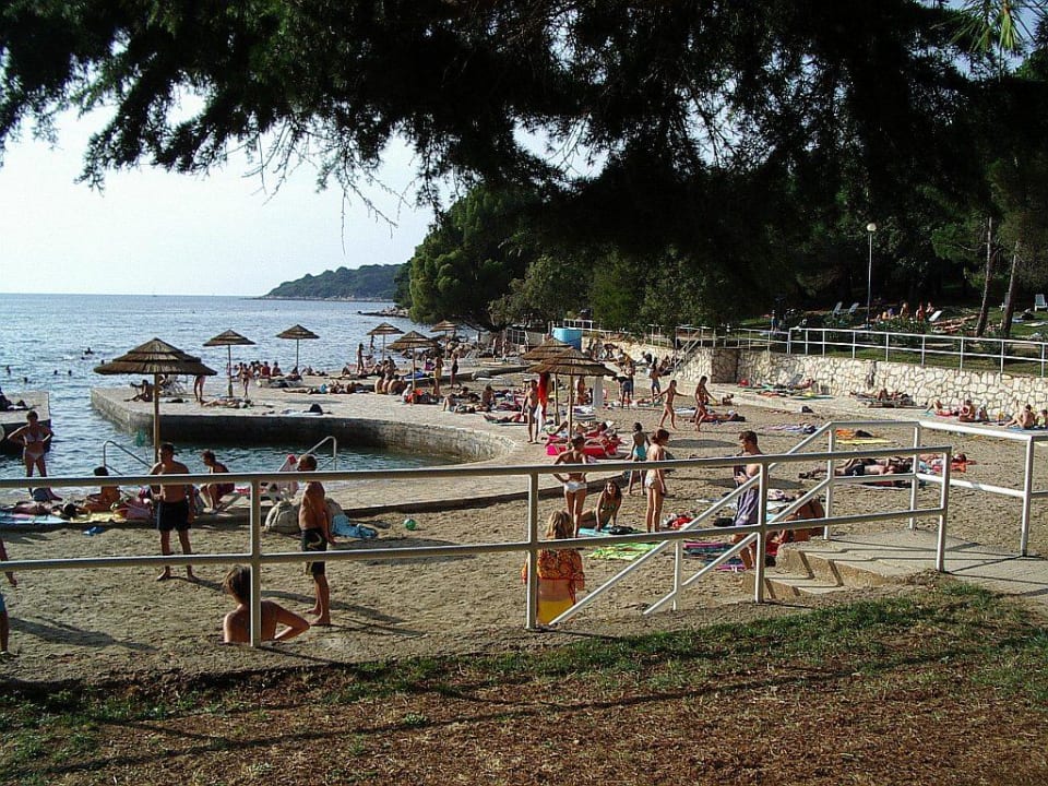 HotelstrandGroßzügig betonierte Liegefläche sogar mit Sand für die kleineren Gäste. Der Einstieg ins Meer erfolgt über Treppen und gleich ins einigermaßen tiefe Wasser, d.h. es sind keine Klettertouren über Steine und Seeigel nötig und sogar ein Kopfsprung wird möglich. Leider sind die Liegen kostenpflichtig (20 Kuna/Tag).