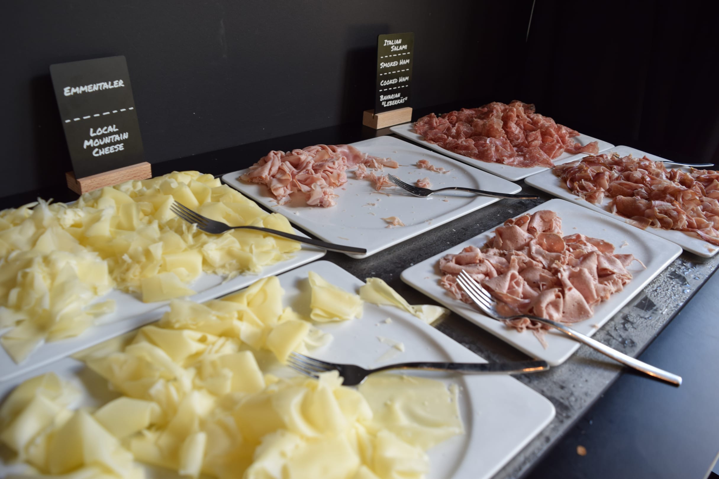 Frühstück in Form eines Buffets. Kleine Auswahl, aber dafür von guter Qualität.