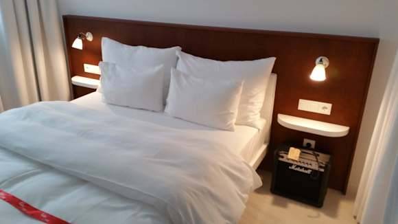 Bett mit Gitarrenverstärker