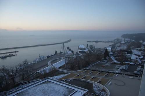 Blick vom Hotel auf alten Fährhafen